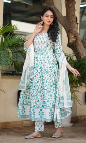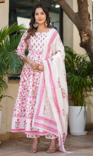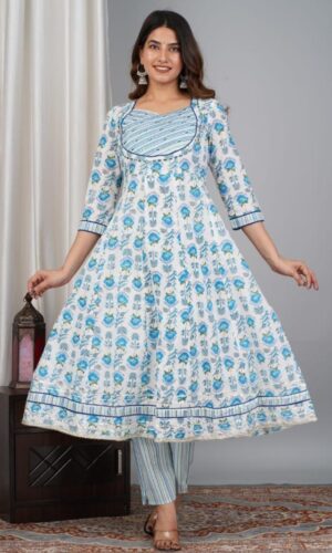 Heritage Hand-Block Printed Pure Cotton Anarkali With Hand-Embellishments