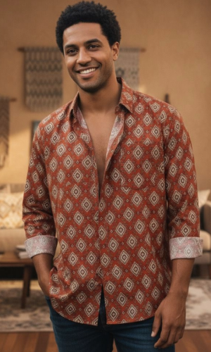 Unique Rust Colour Pure Cotton Hand Block Printed Shirt