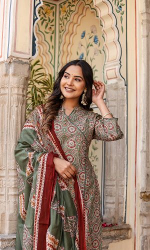 Rich Rosewood Cotton Anarkali Set