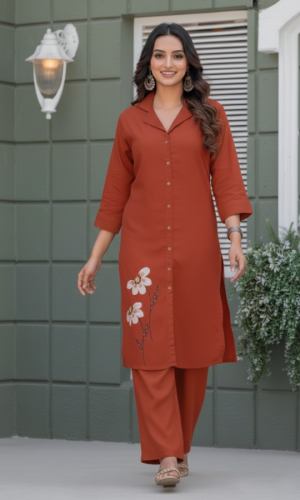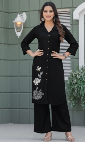 Traditional Motif Crepe Palazzo Fashion Set