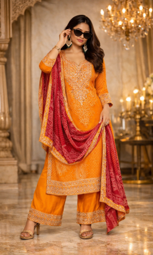 Luxurious Pure Chinon Palazzo Occasion Suit