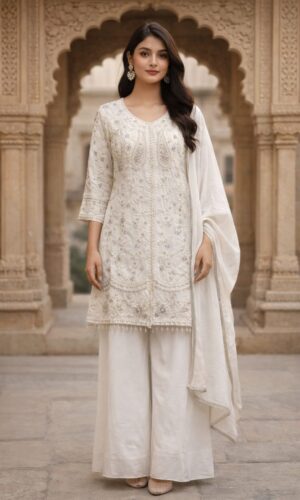 White Kurta Set with Embroidery