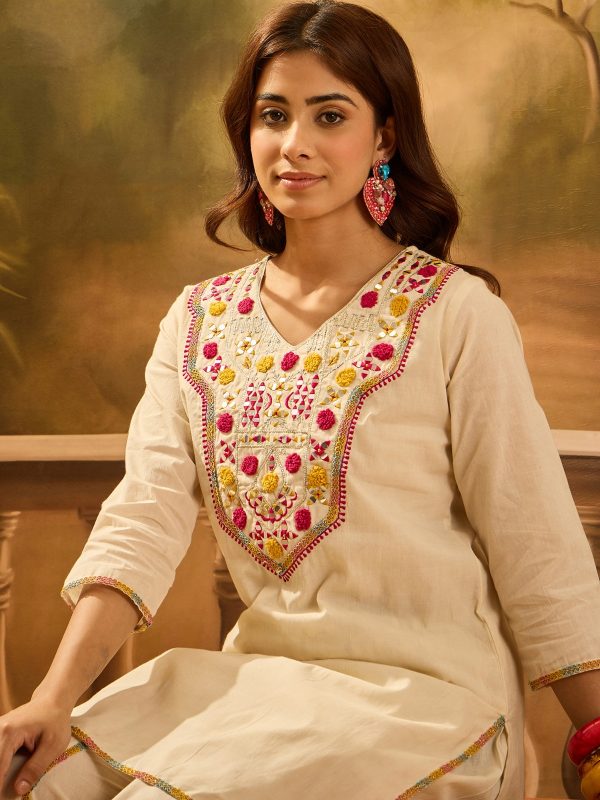 Twirl in style with tulip pants bottoms and unique 3D work kurti along with comfort of 100% pure cotton