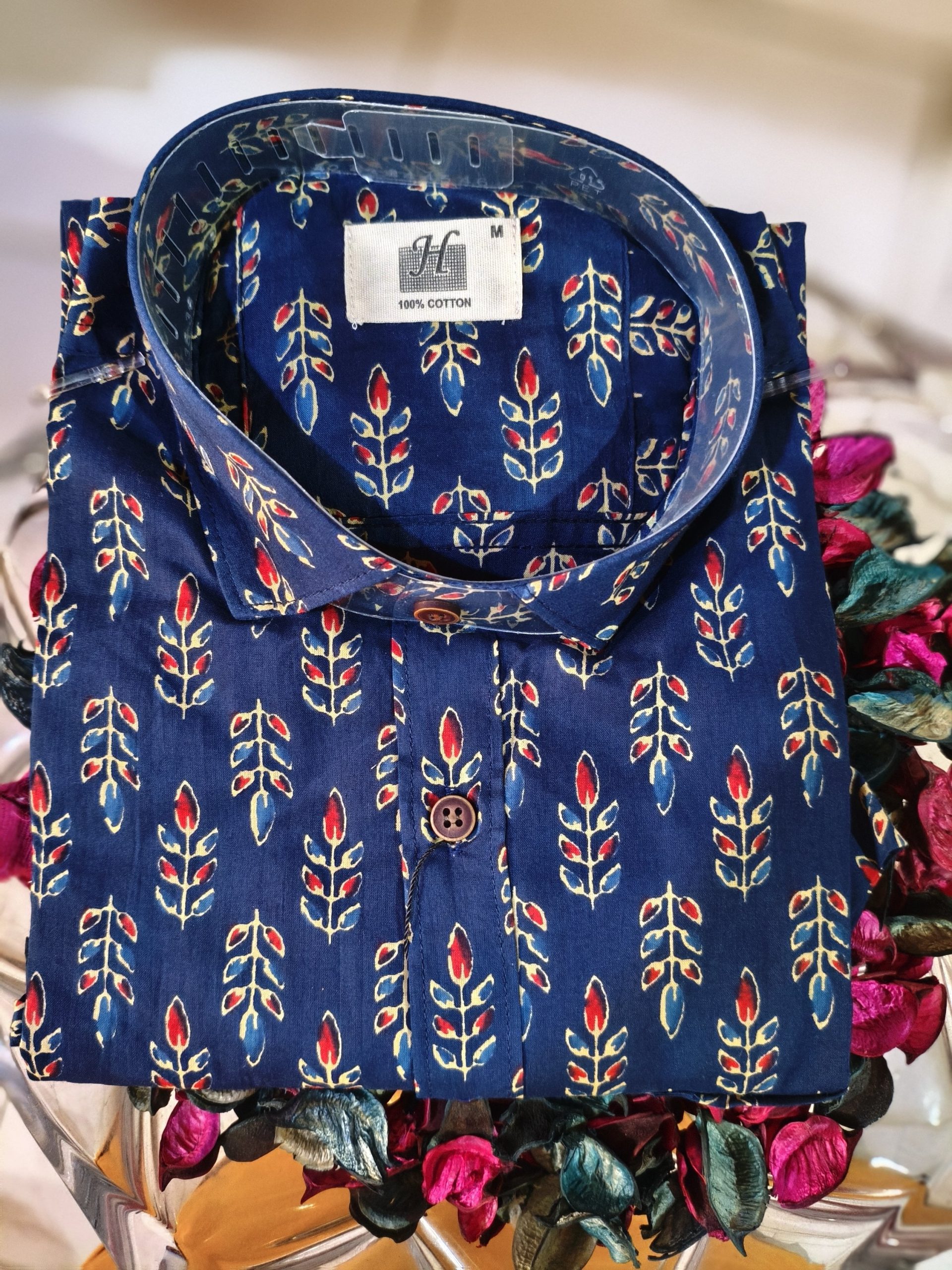 A 100% pure soft and cool fabric shirt with excellent stitch and hand block prints . It is a perfect choice for a modern cum traditional getup but you can also comfortably carry it as work wear or a cool party wear. So this one is really a versatile piece that will make you stand out at every occasion.