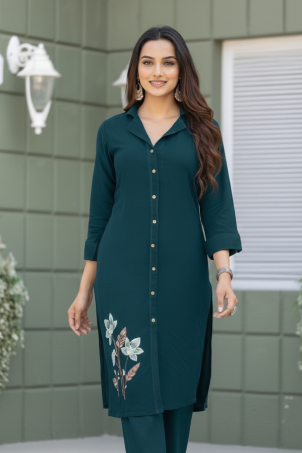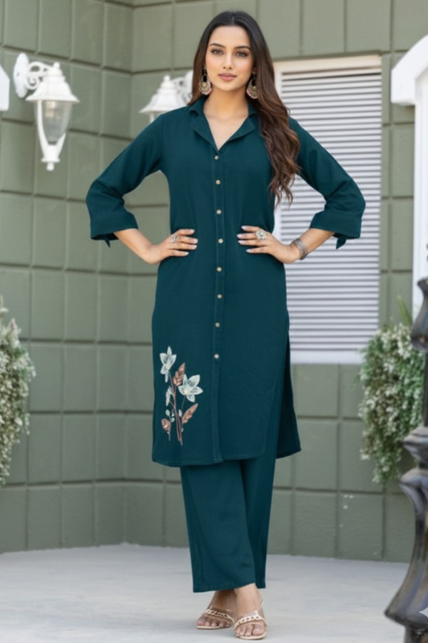 Olive Green Showstopper Palazzo Kurta ShawlFabric:Rayon Cotton