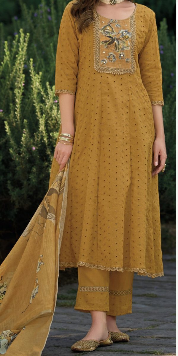 Amazing Amber Yellow Pure Cotton Anarkali Set