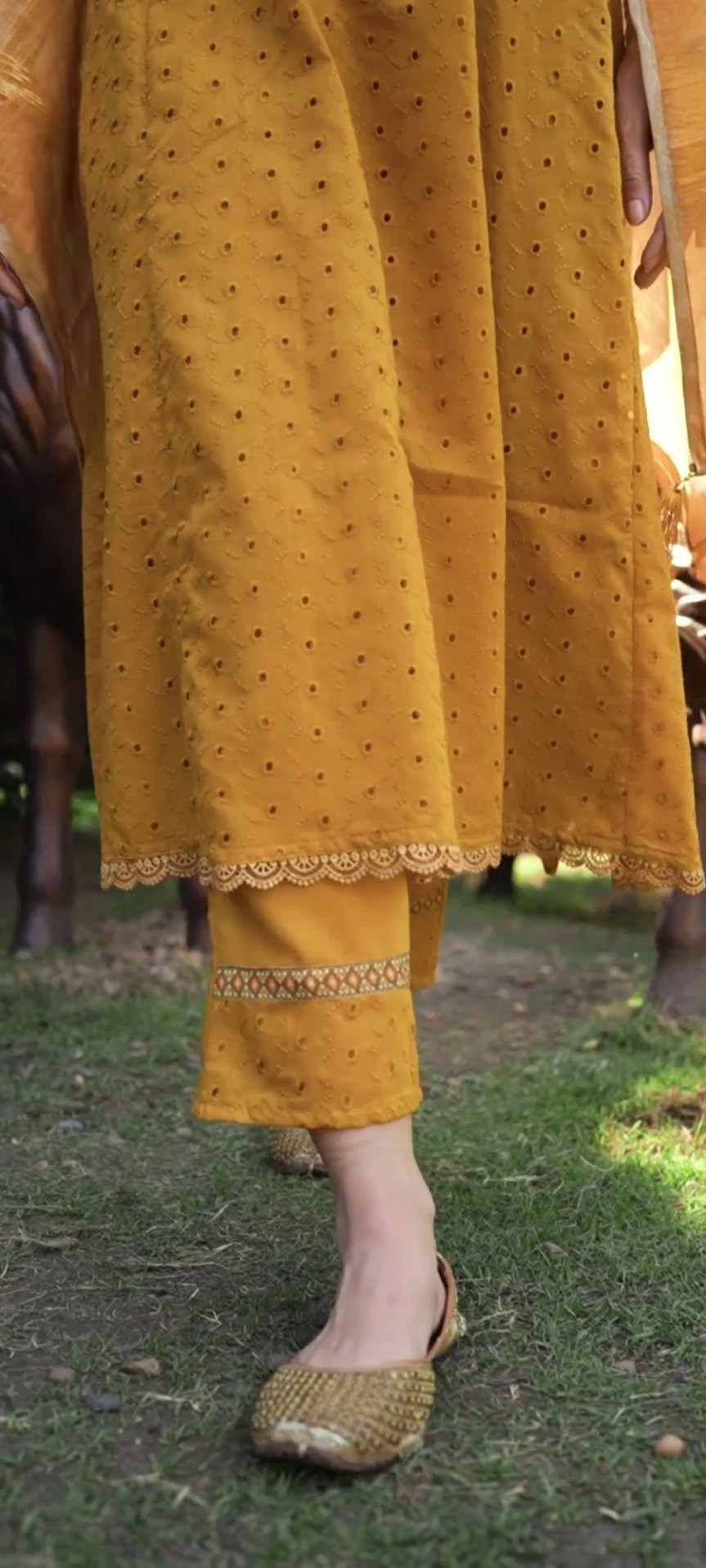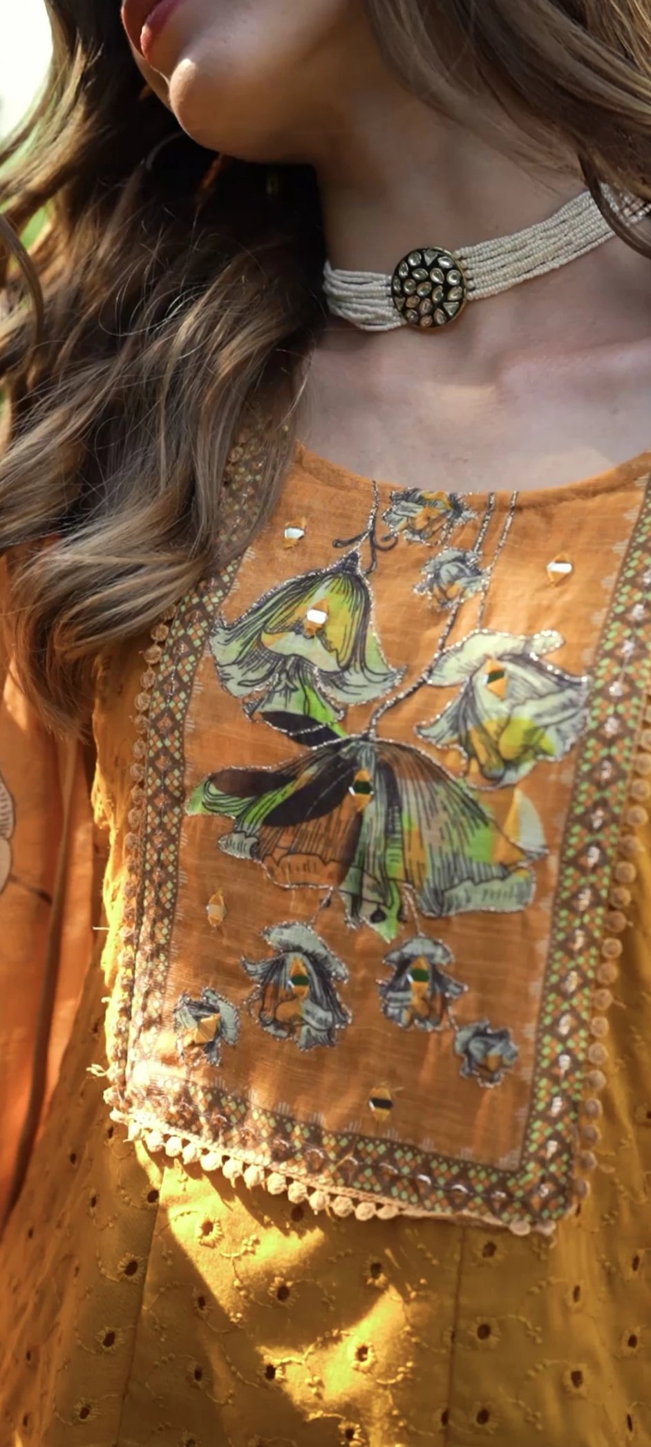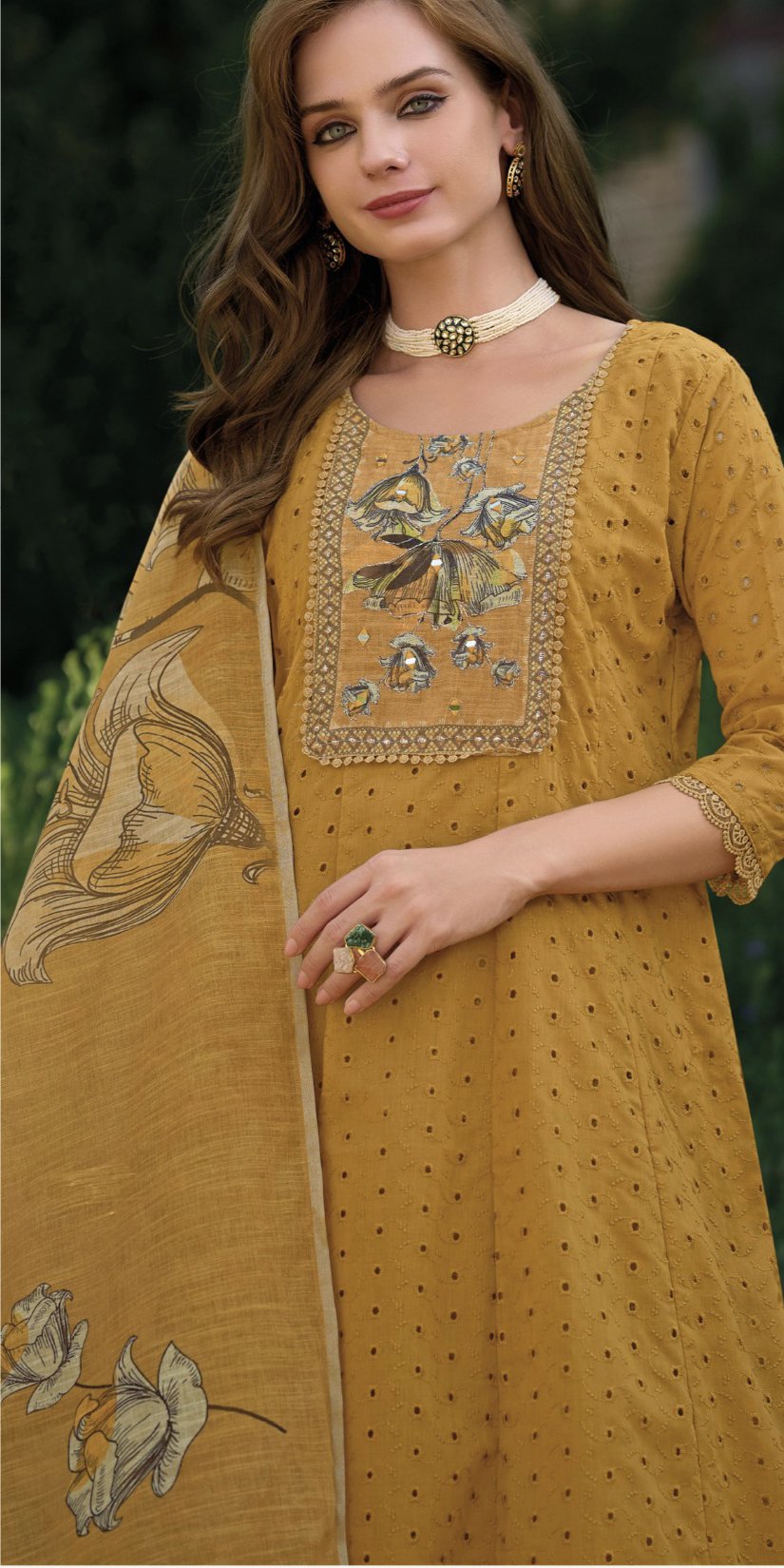 A classic pure Cotton anarkali with all over hand embroidery and unique digital print highlights to take your style to the next level!!