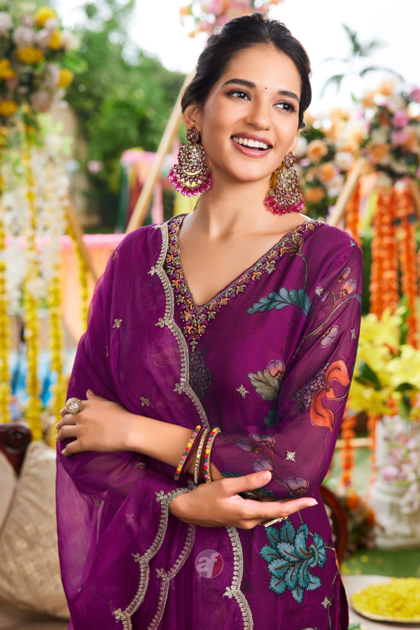 Pure breathable chinon Silk fabric, intricate hand embroidery and eye catchy digital prints to make you look like a queen…