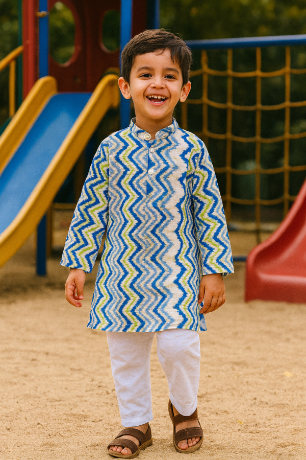A comfortable and stylish pure cotton kurta set for boys, ideal for festive occasions and everyday wear.