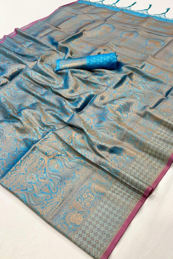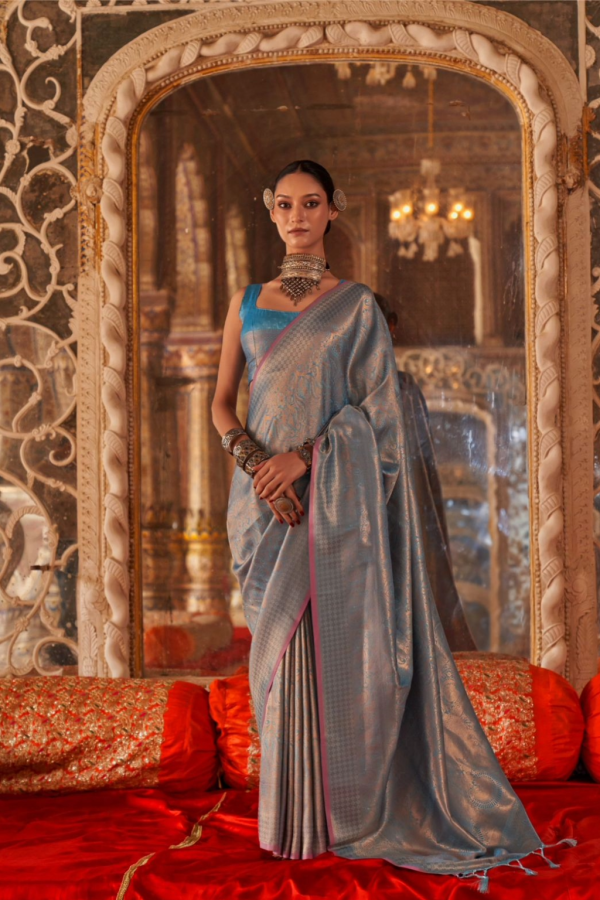 This Kanjivaram saree is perfect for a slimming silhouette with its soft, breathable fabric. The elegant gold zari detailing adds a touch of richness, and the pricing ensures great value. Stand out in this unique heritage piece!