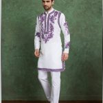 Luxurious Embroidered Kurta Pajama for Men in Quicksand Pink