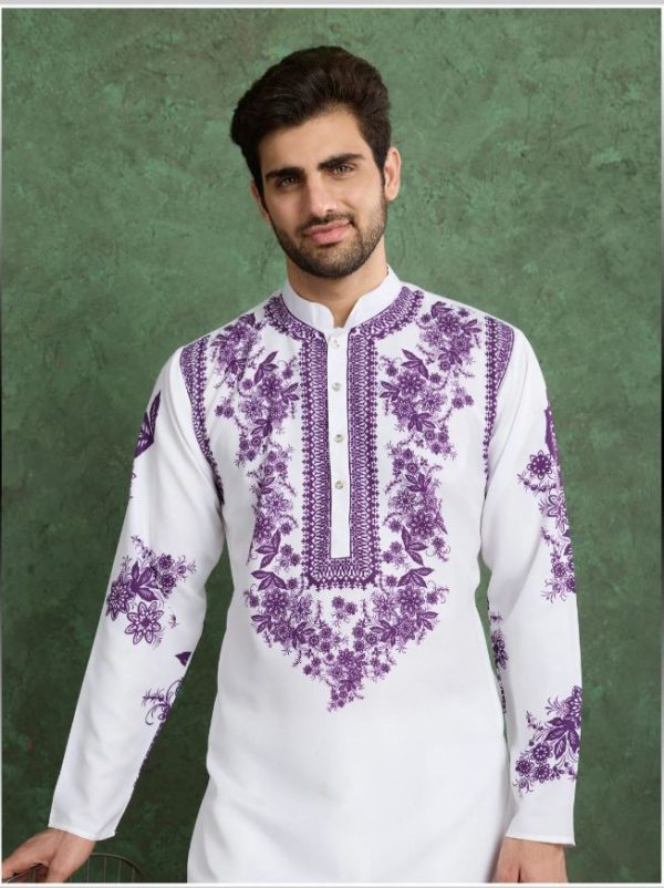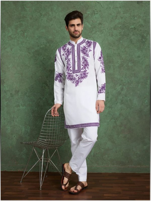 Cool and Comfy Embroidered Kurta Pajama for Men in White