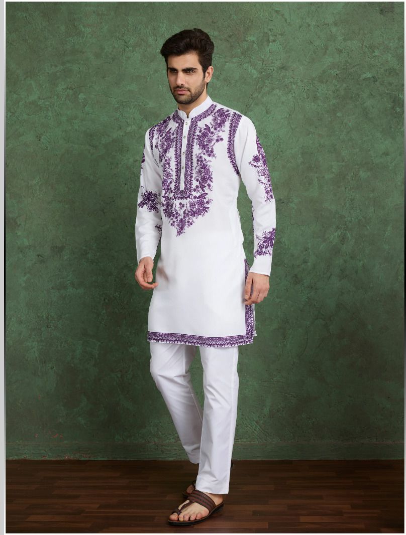 Cool and Comfy Embroidered Kurta Pajama for Men in White