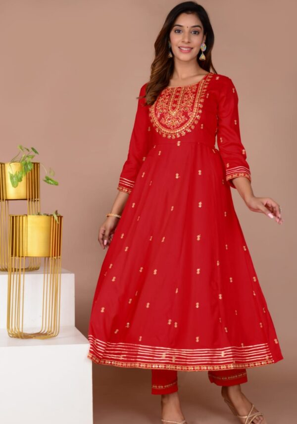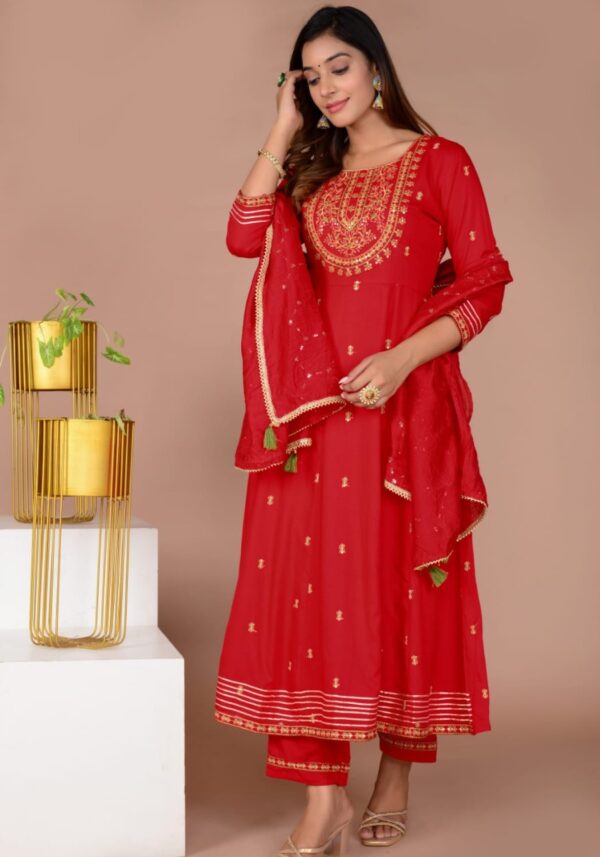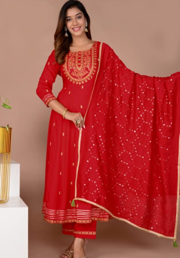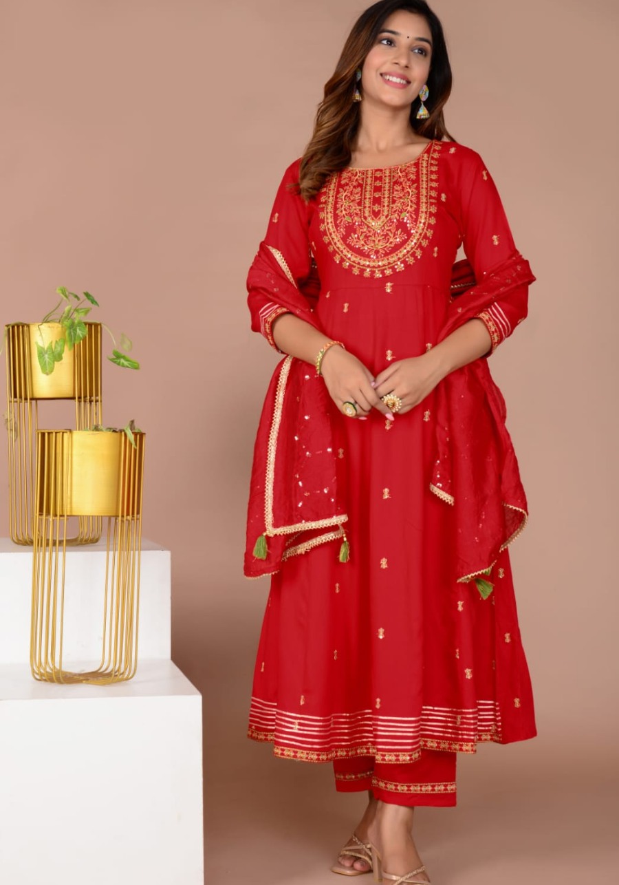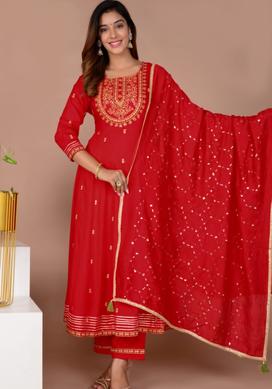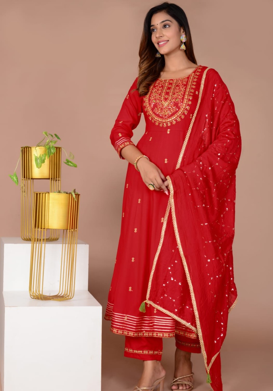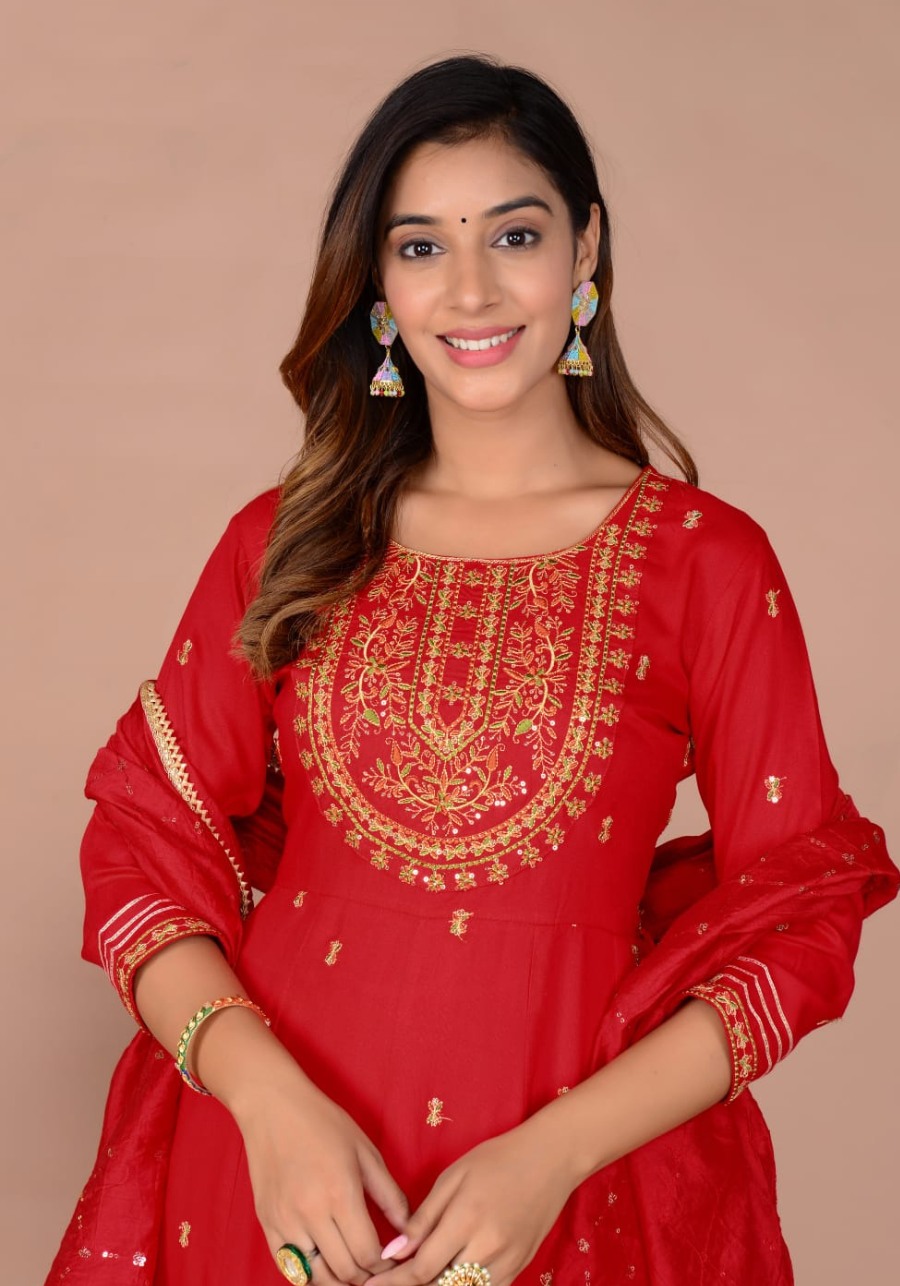Cherry Red Pure Georgette Anarkali With Embroidery