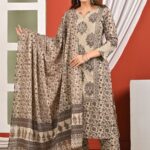 Blossomy Navy Blue Pure Cotton Anarkali Set