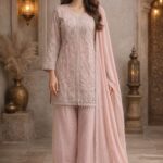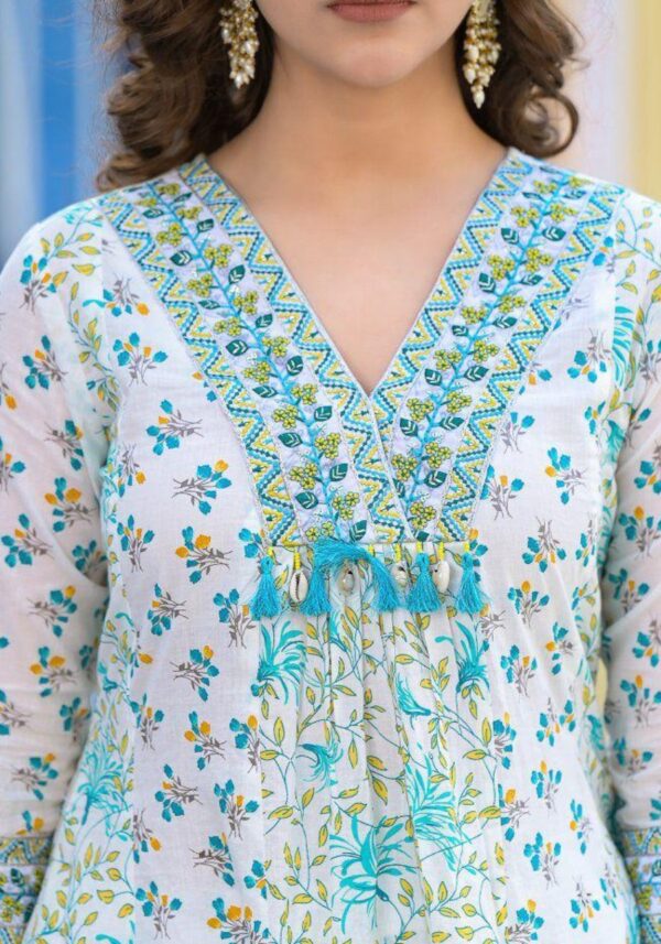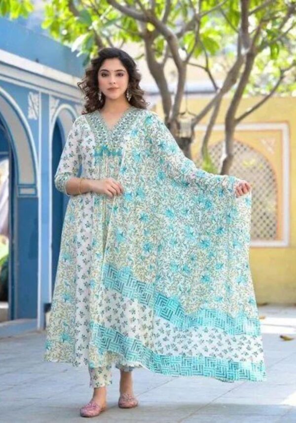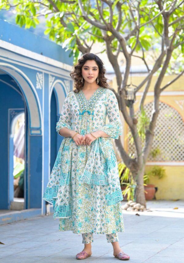 This elegant ensemble is crafted from the finest pure cotton, elevated by meticulous hand-embroidery that showcases true artisanal skill.