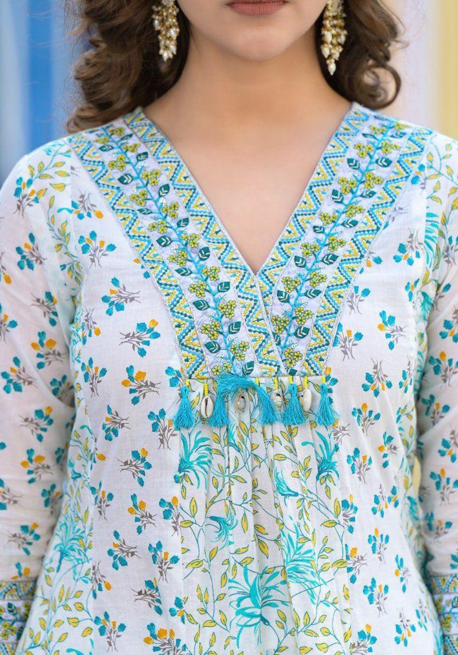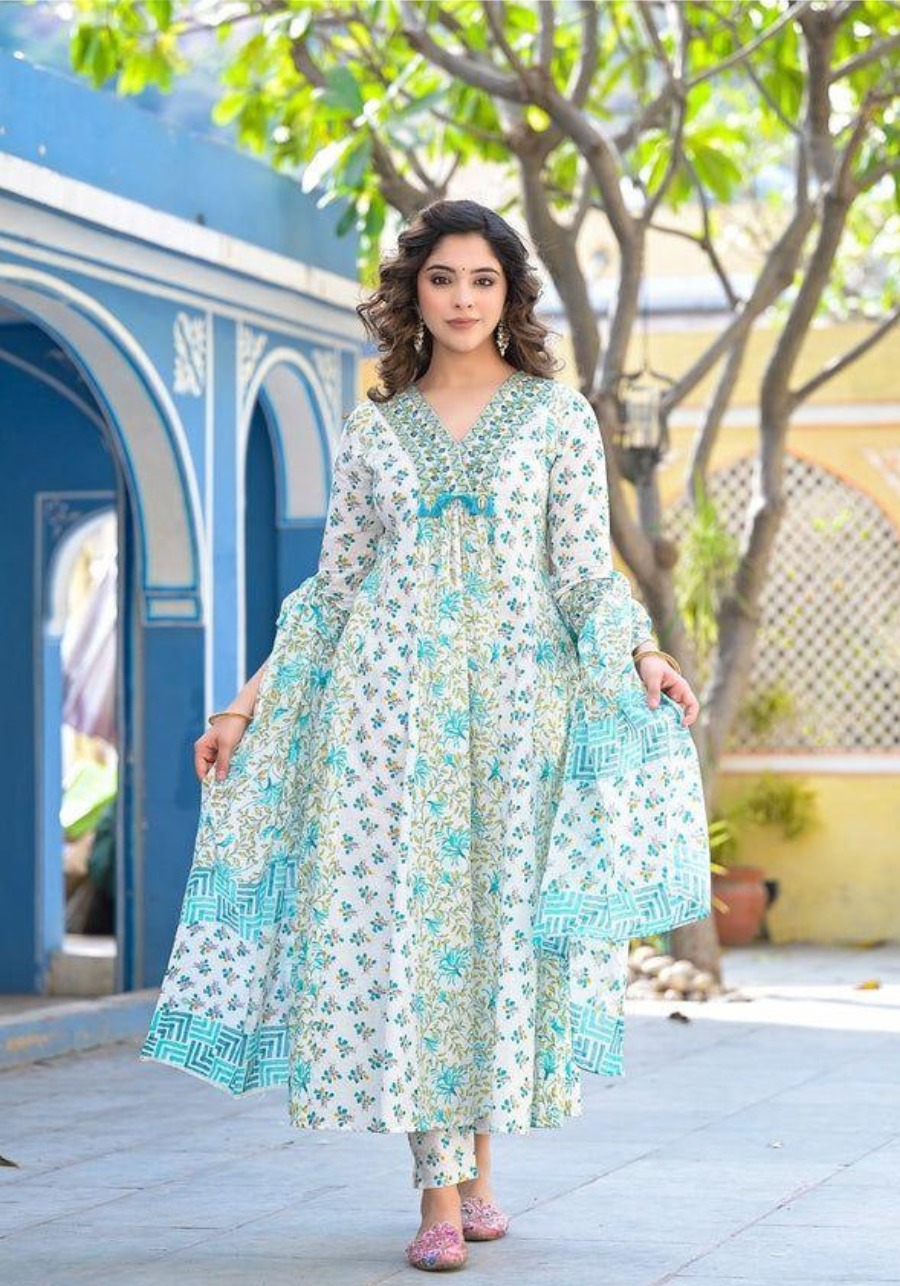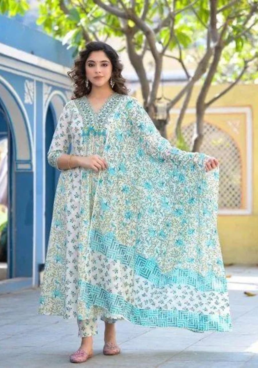 Blossomy Navy Blue Pure Cotton Anarkali Set