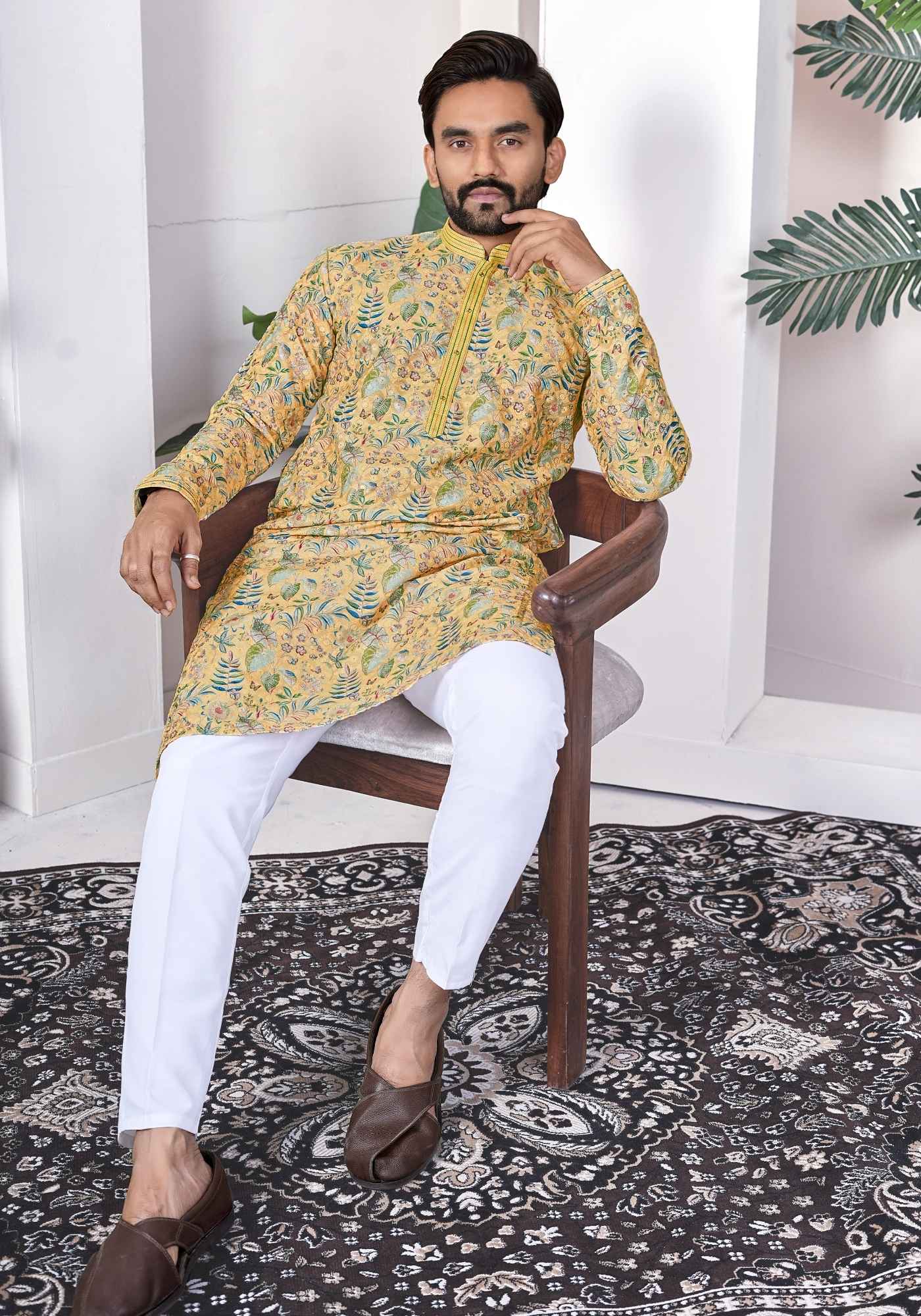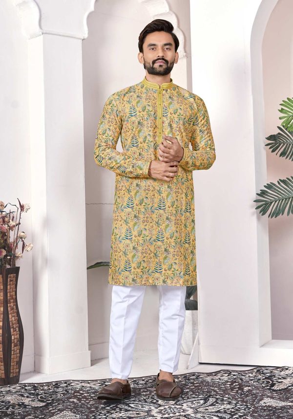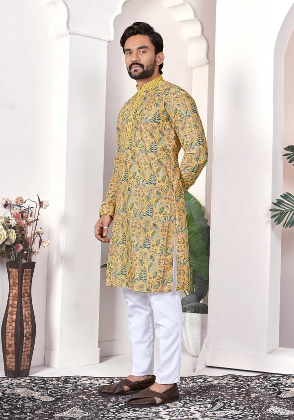 Cool and Comfy Embroidered Kurta Pajama for Men in Hampton Yellow