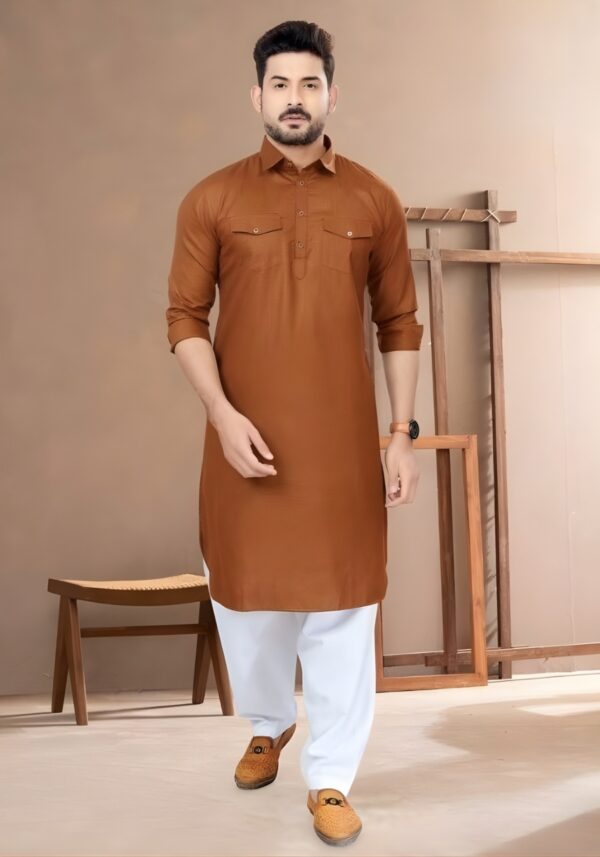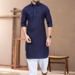 Tailored in a classic long-style cut, the kurta provides a sharp, structured look. It is paired with a Cotton Pajama for a complete, cohesive ensemble. This collection brings a luxury look with the practical ease of cotton, making it an essential addition to your ethnic wardrobe.