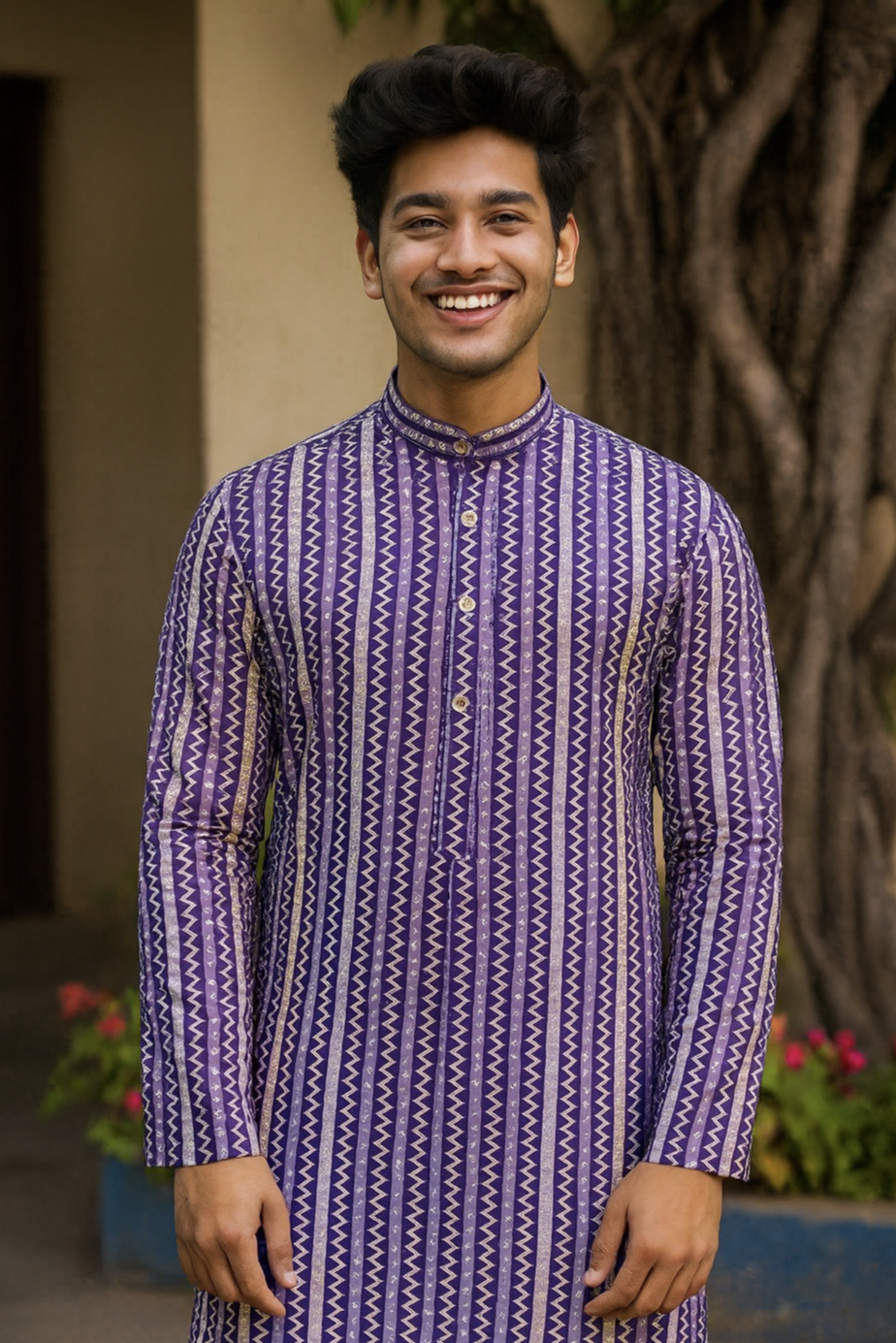 Buttery soft, gold highlight vertical style prints and great stitch kurta pajama…