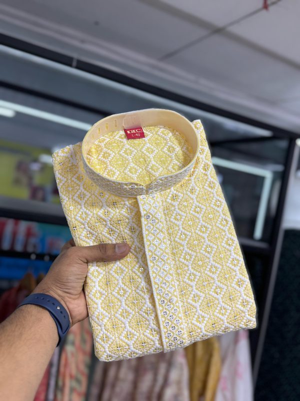 Cool and Comfy Embroidered Kurta Pajama for Men in Hampton Yellow