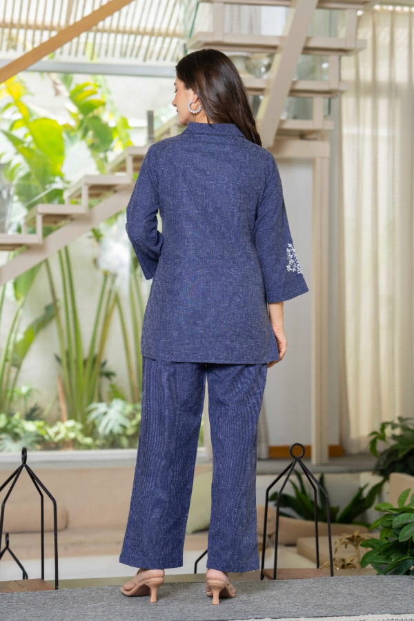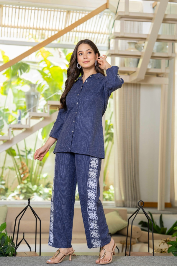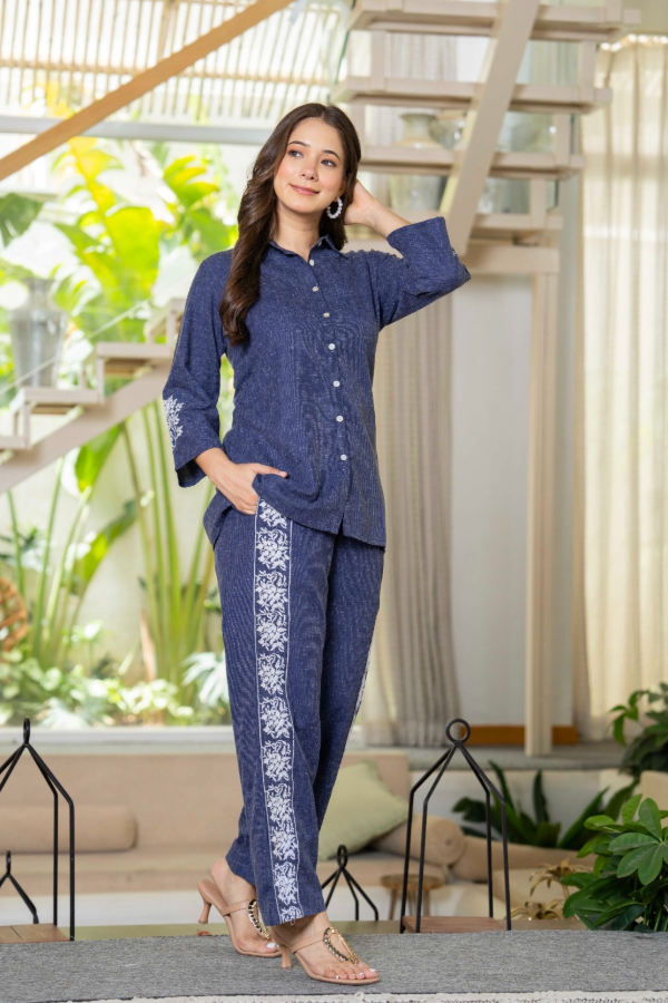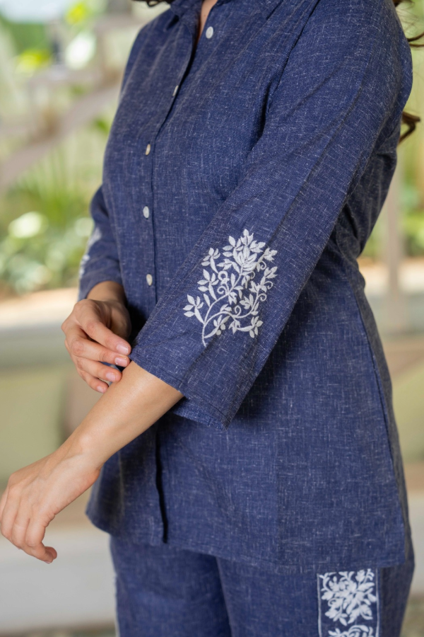 Comfy, breathable flex cotton adorned with subtle embroidery for effortless elegance.