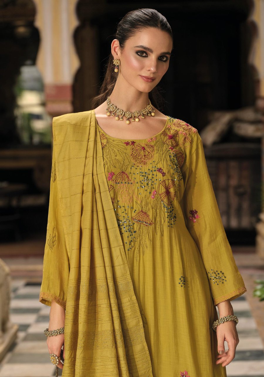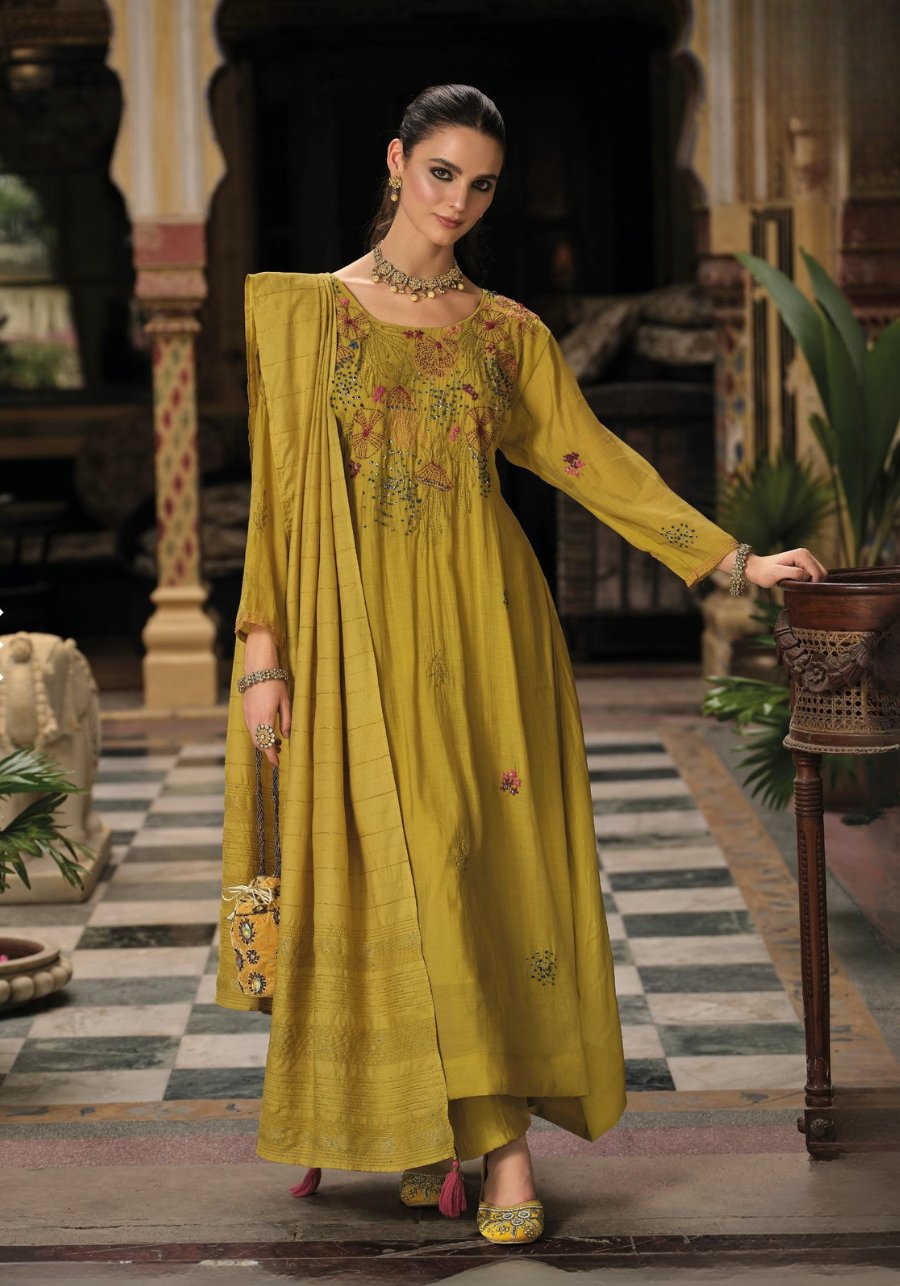 Designer Mustard Kantha Set In Breathable Mul Chanderi