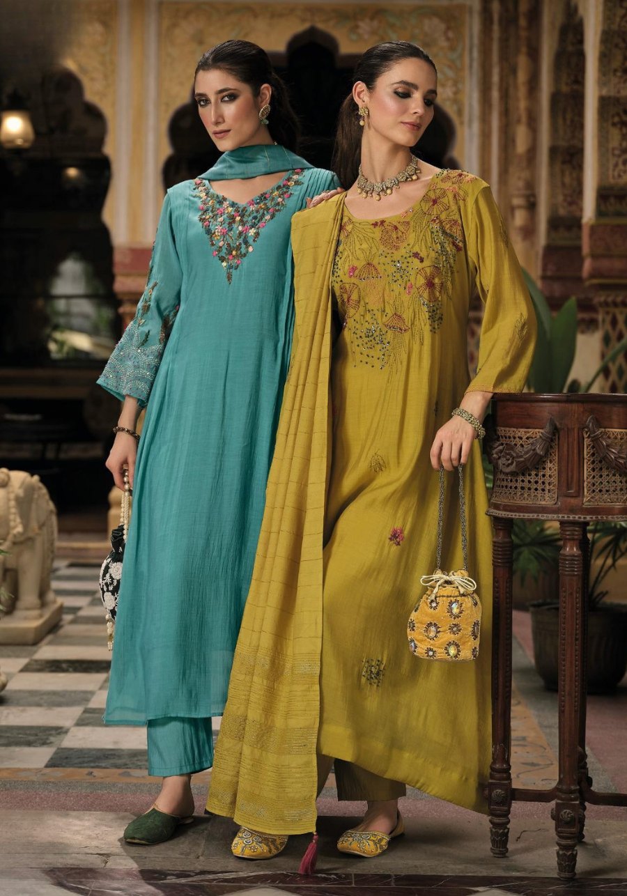 Step into luxury with our fully stitched, three-piece Pure Mul Chanderi set. This “ready-to-glow” collection perfectly blends buttery-soft fabric with the timeless charm of artisan Kantha hand-work.