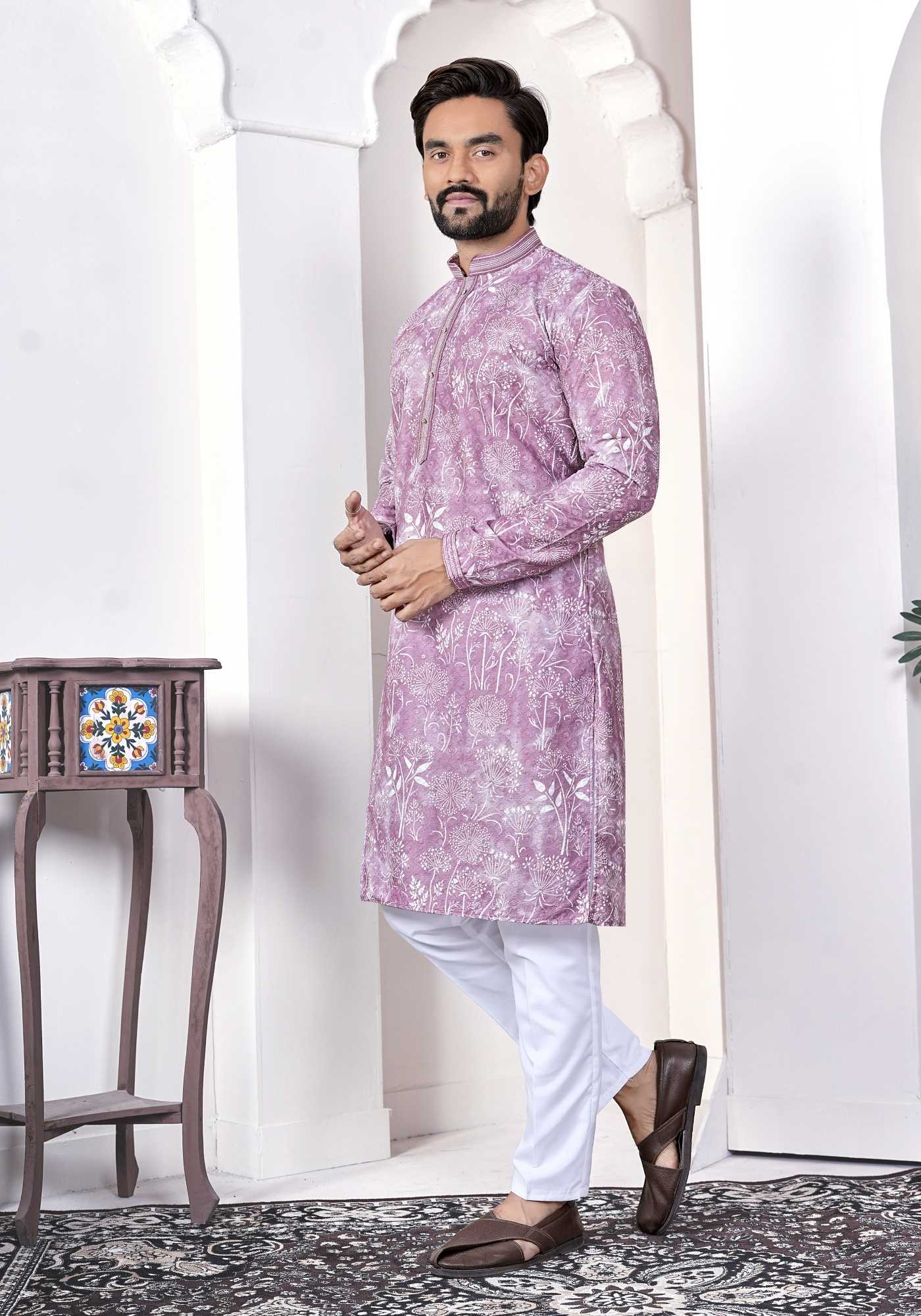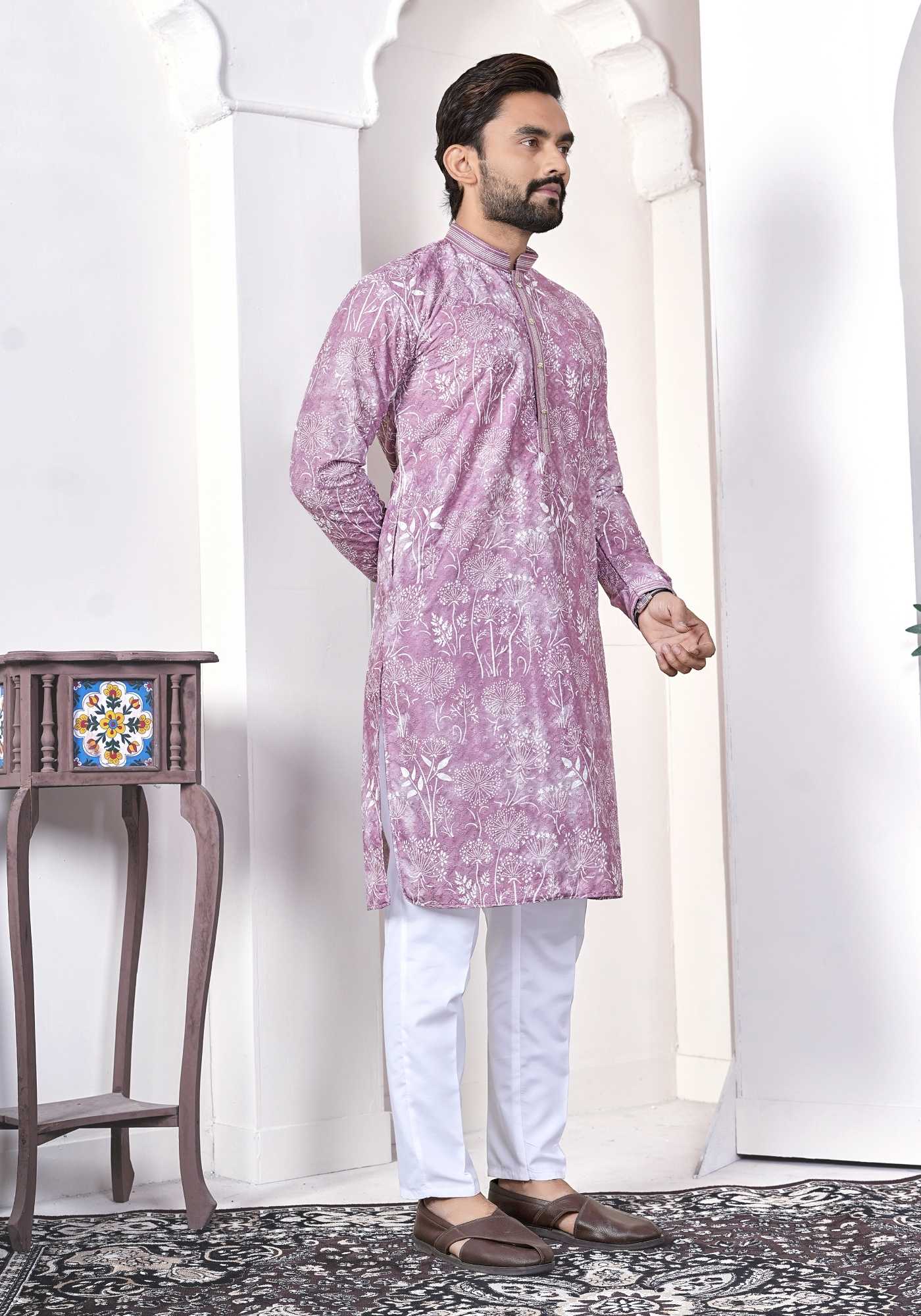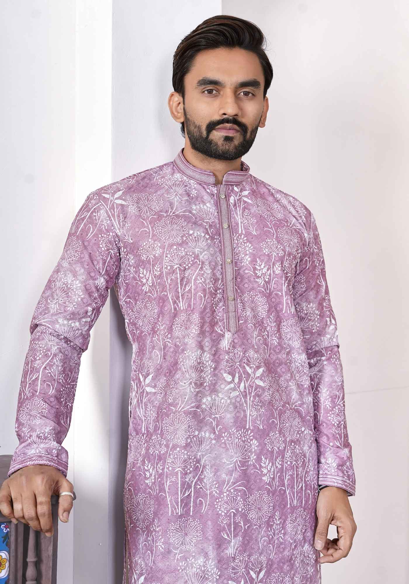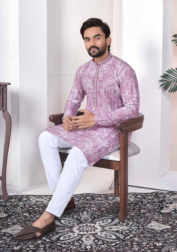 Cool and Comfy Embroidered Kurta Pajama for Men in Dust Storm Pink