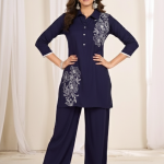 Blossomy Navy Blue Pure Cotton Anarkali Set