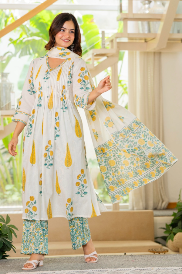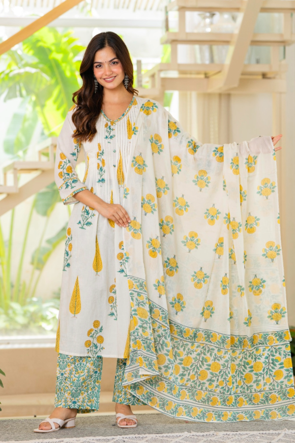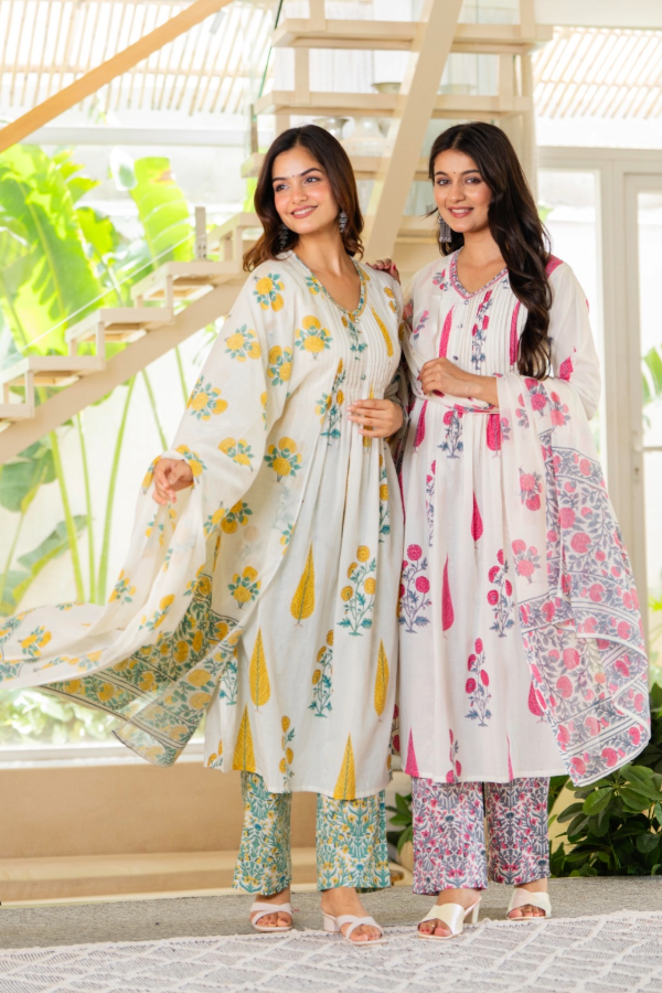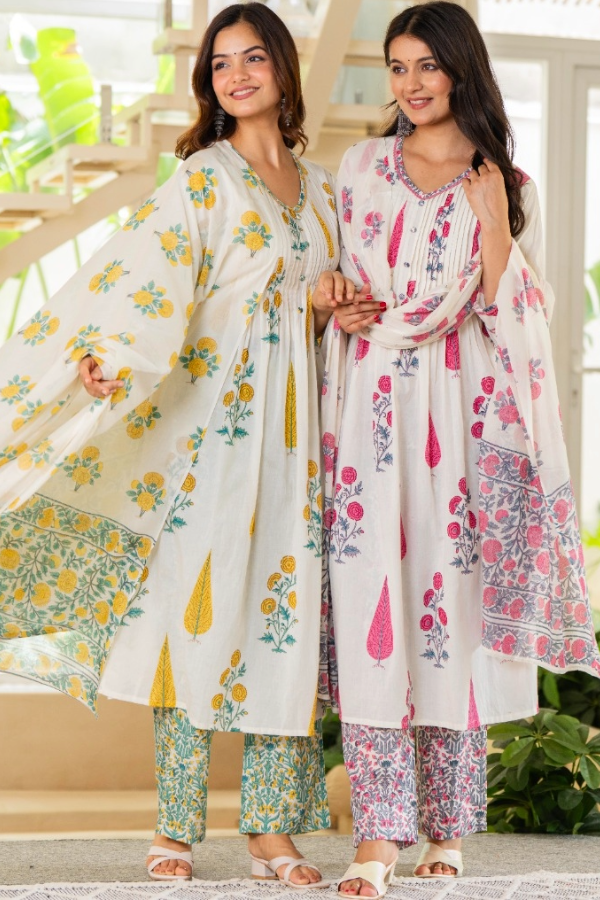 Entirely hand block printed on classy soft cotton for a sophisticated appeal.
