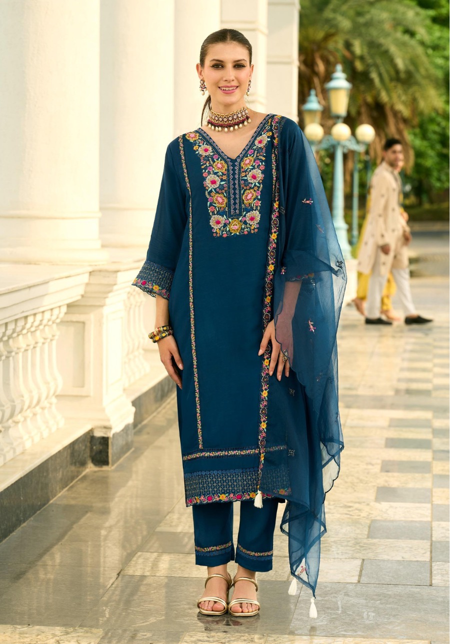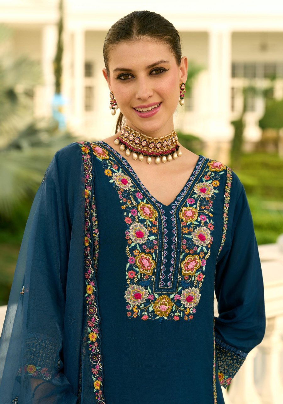 Step into a world of refined elegance with our pure mull chanderi hand work collection. This ensemble is a celebration of traditional craftsmanship blended with modern silhouettes, perfect for festive gatherings and special occasions.