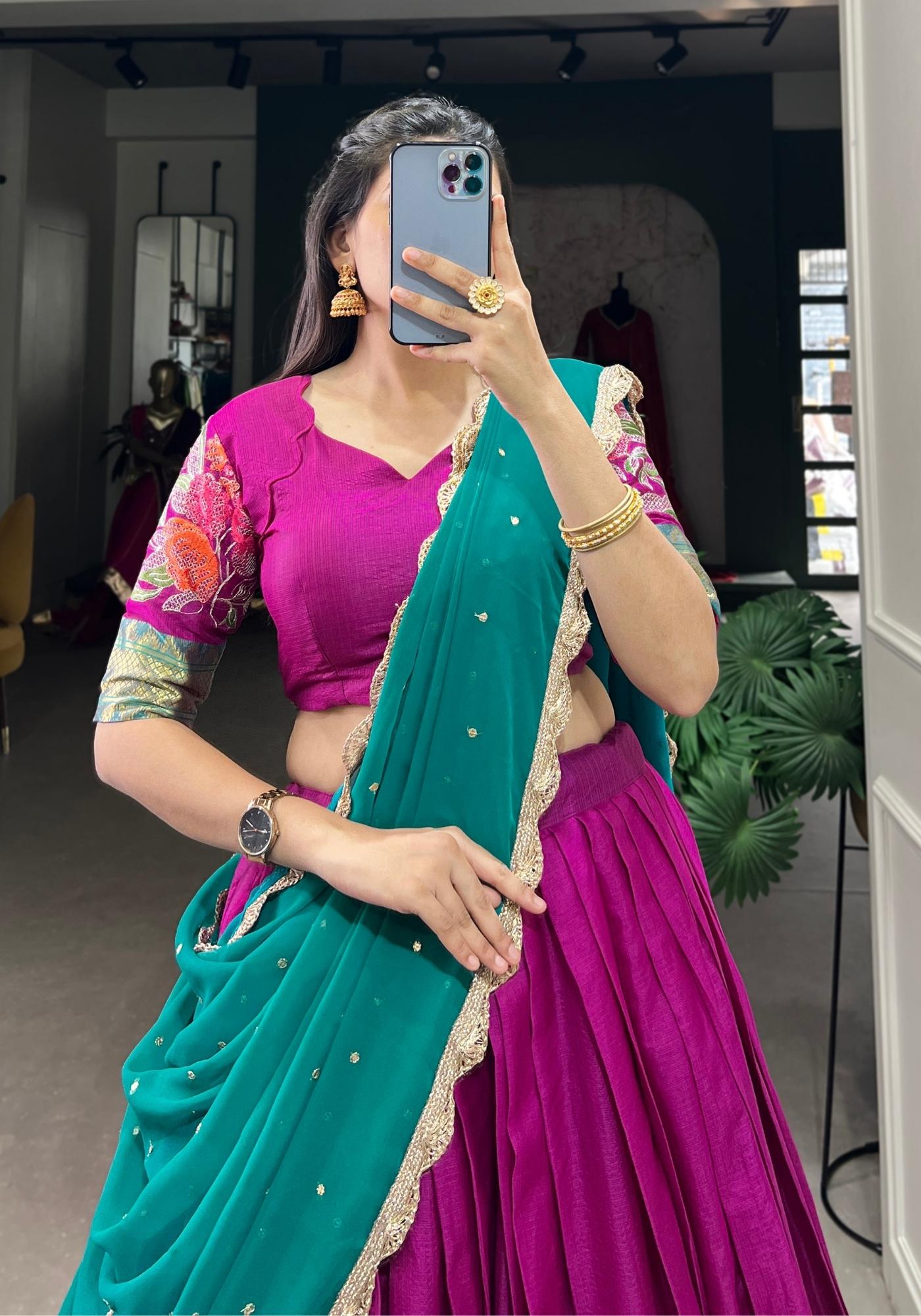 Embroidered Cotton Silk Lehenga Set – Fully Stitched (Comfortable and Premium Fabric)