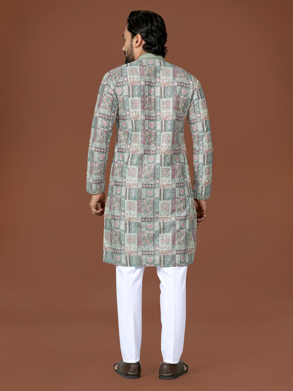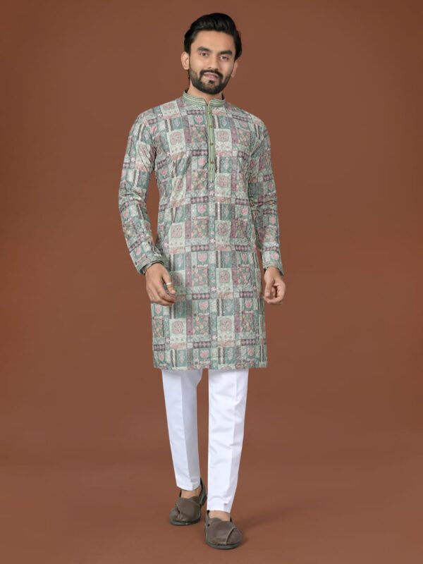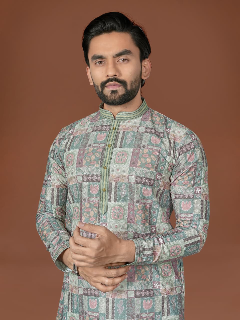 Luxurious Embroidered Kurta Pajama for Men in Nobel Pink(Comes with White Pants/Pajama)