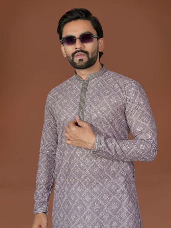 Cool and Comfy Embroidered Kurta Pajama for Men in Dust Storm Pink