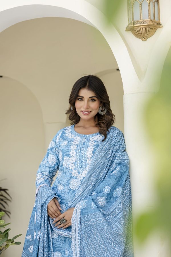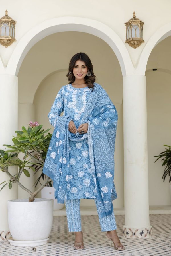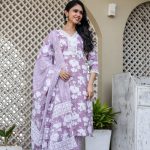 Blossomy Navy Blue Pure Cotton Anarkali Set