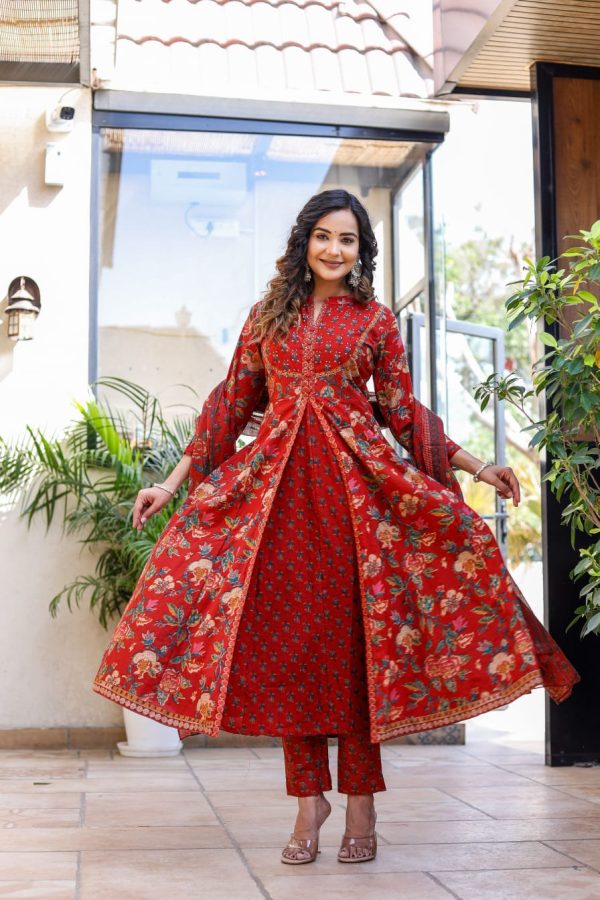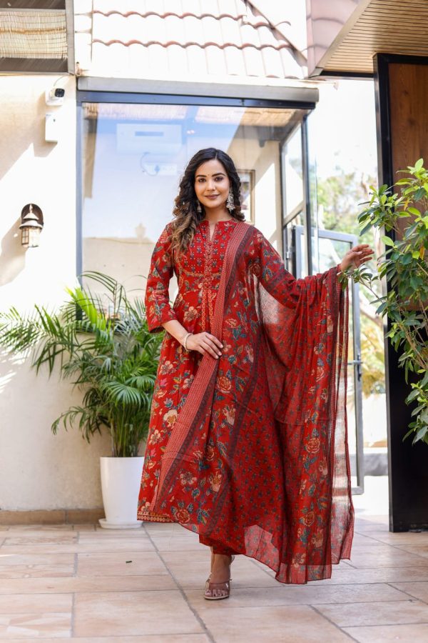 Rich Rosewood Cotton Anarkali Set