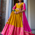 Embrace timeless ethnic elegance with this exquisite three-piece half lehenga set, perfect for weddings, festivals, and grand celebrations.