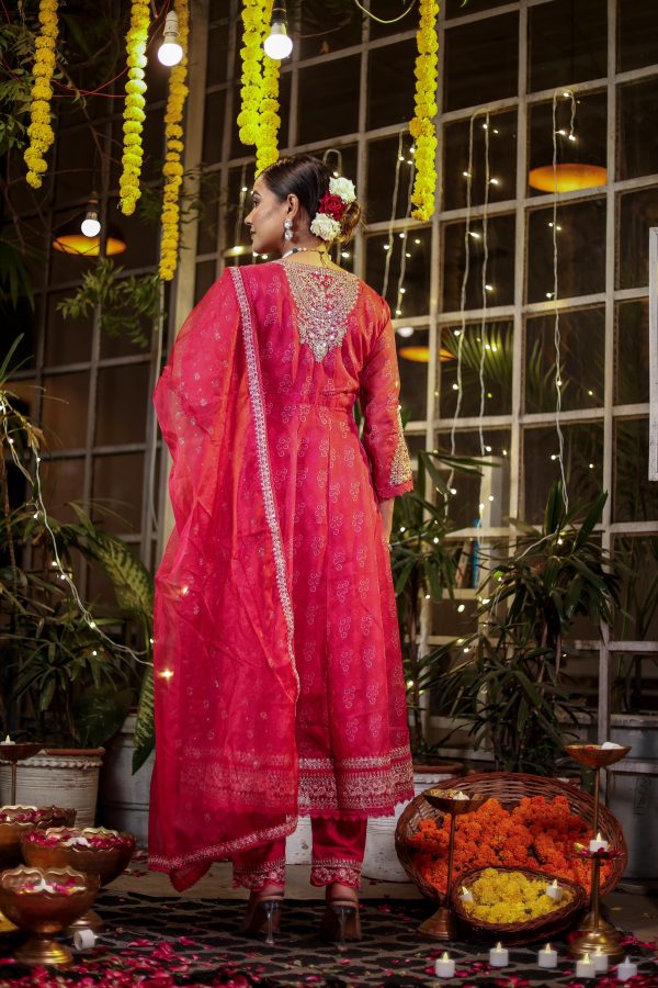 Breathtaking pure muslim silk anarkali which is breathable, skin friendly yet appropriate for festivities.. stylish embroidery at front and back for that extra bling!!