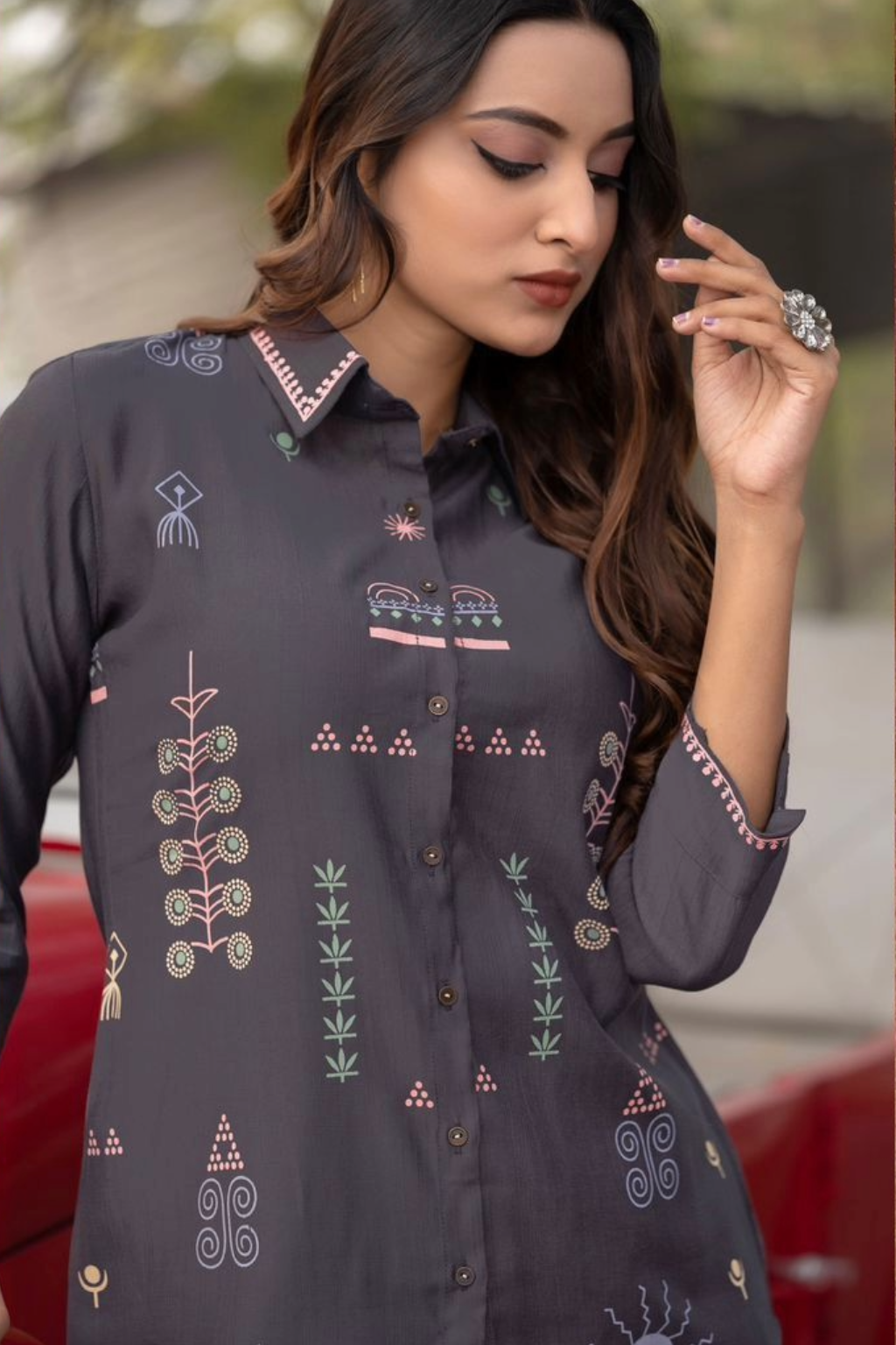 Get glowing in cotton blend fabric coord set with catchy patterns and classy stitch