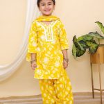 Pure Cotton Frock Kurta Set with Shawl in Sunset Yellow