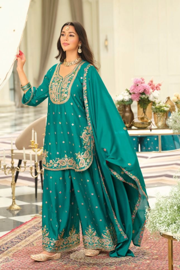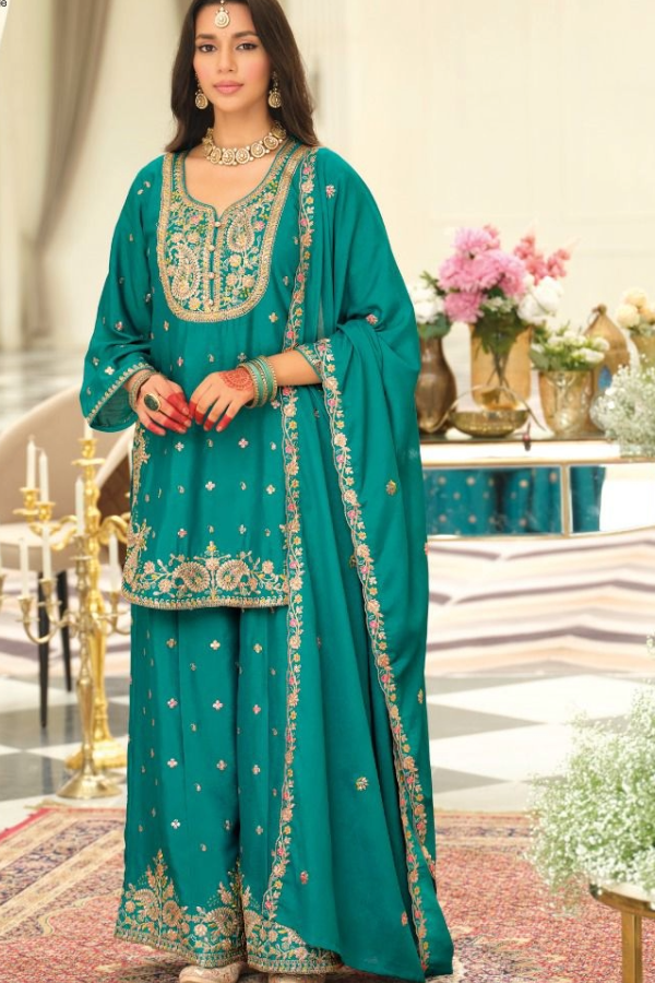 A gorgeous premium chinon silk kurti-palazzo set with embroidered dupatta that is comfy, playful and glamorous at the same time⦠this high quality piece is going to make you the showstopper during festivitiesā¦.