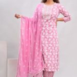 Pure Cotton Flary Pink Kurta Set with Shawl