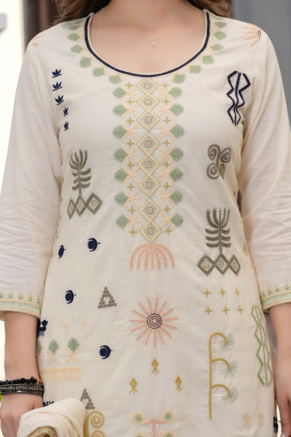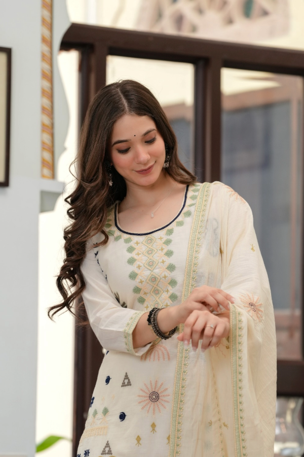 Luxurious hand-embroidered cotton with unique motif detailing.