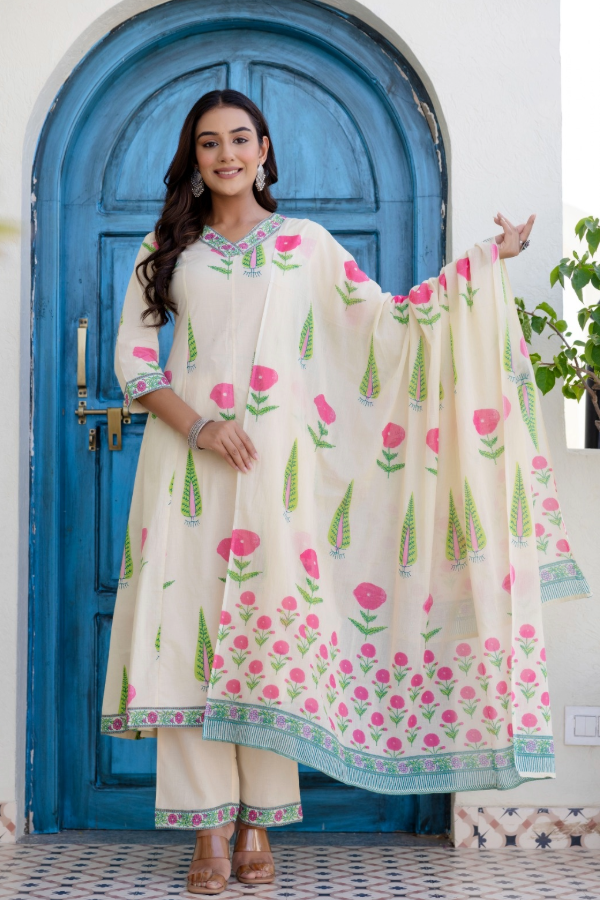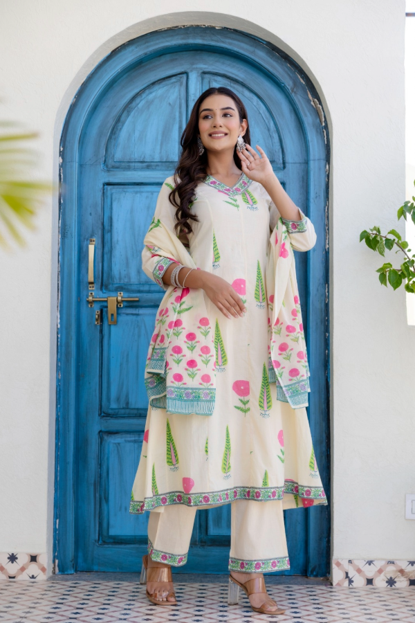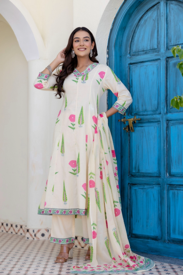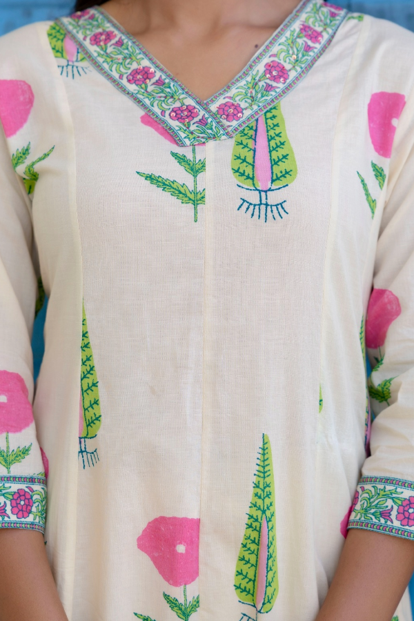 Artisan-printed, pure cotton dress with unique, hand-blocked designs.