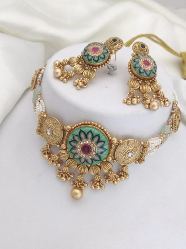 Grand Stone Meenakaari Choker in High Quality Brass