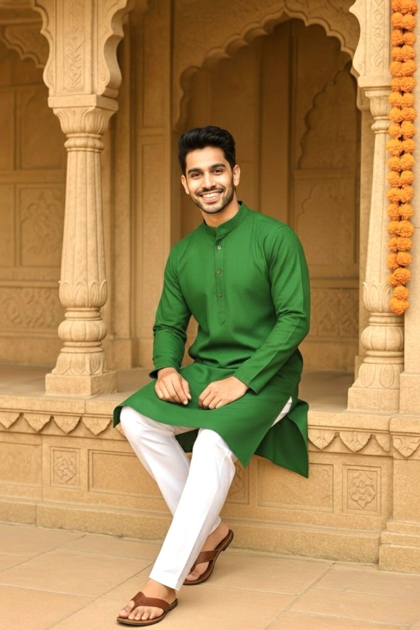 Cool and Comfy Embroidered Kurta Pajama for Men in Sage Green