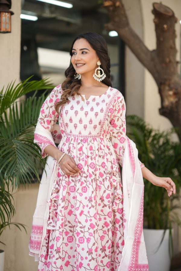 Discover our hand-block printed Anarkali at an unbeatable price. The fabric is pure, non-see-through, and incredibly soft, keeping you cool and comfortable all day. With high-quality stitching, this piece gives you a distinct and elegant look, perfect for any occasion.