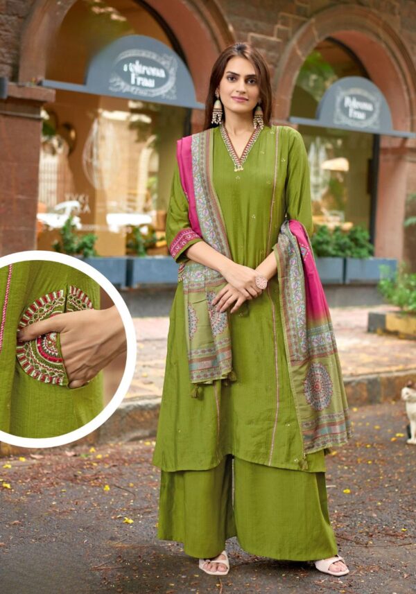 The perfect mix of style and comfort with our Barline Viscose and Pure Chanderi Set This outfit is made for the modern woman who wants to look elegant without sacrificing comfort. It is versatile enough to wear to a festive day at the office or a fancy dinner party at night.