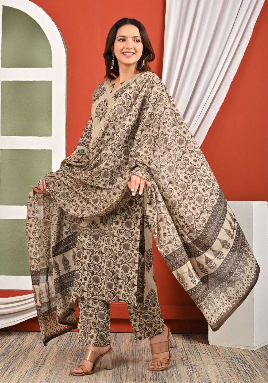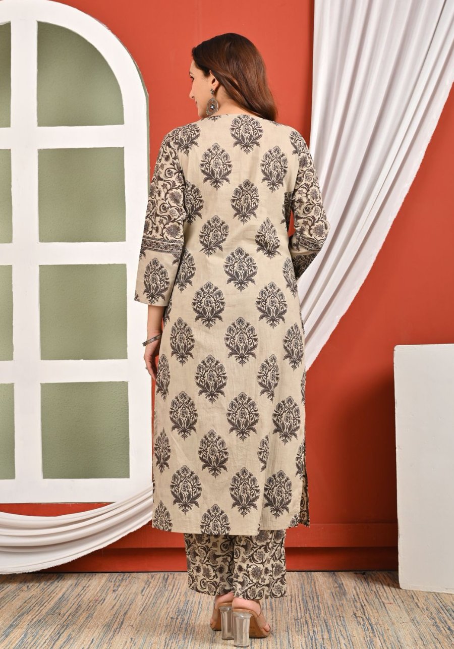 Hand-Embroidered Block Print Pure Cotton Ensemble